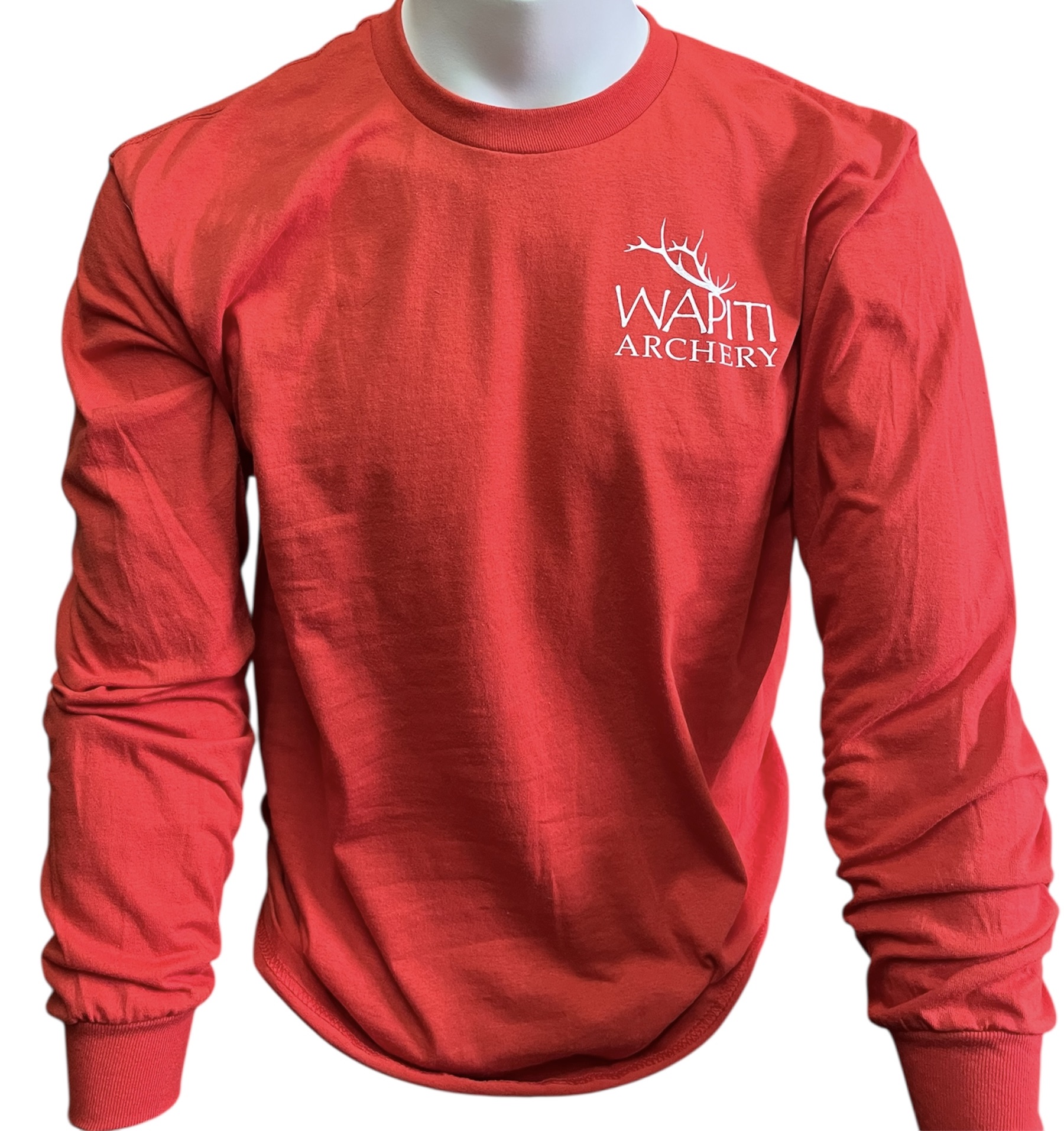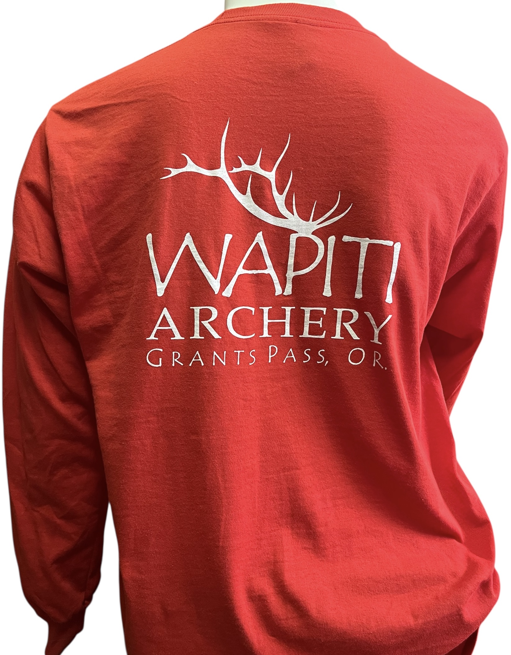 Red Long Sleeved T-Shirt with “Wapiti Archery Grants Pass, OR” on the back and “Wapiti Archery” on the front.